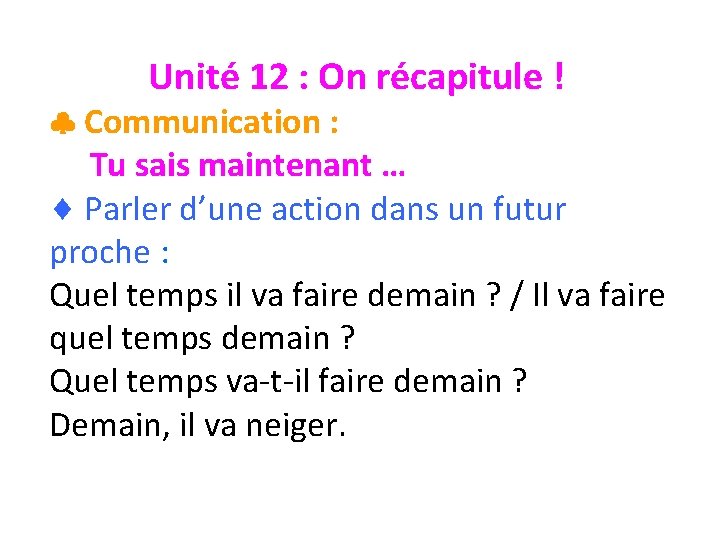 Ailleurs, ce sera des pluies verglaçantes. Il va neiger= it's going to snow. La réponse est le ccp va m'envoyer un relever à partir de juillet par mois à compter du 1 juillet.